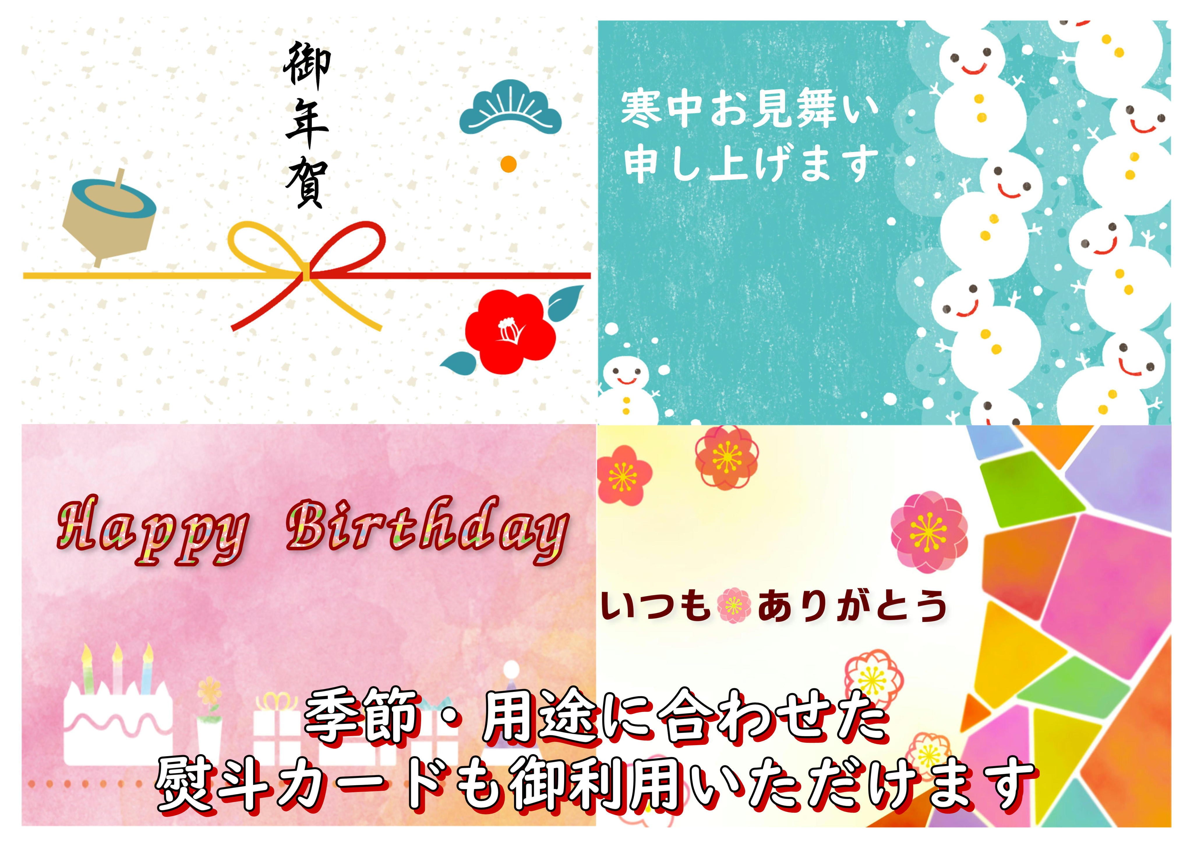 季節・用途に合わせた、熨斗カード(無料)も、ご利用いただけます。