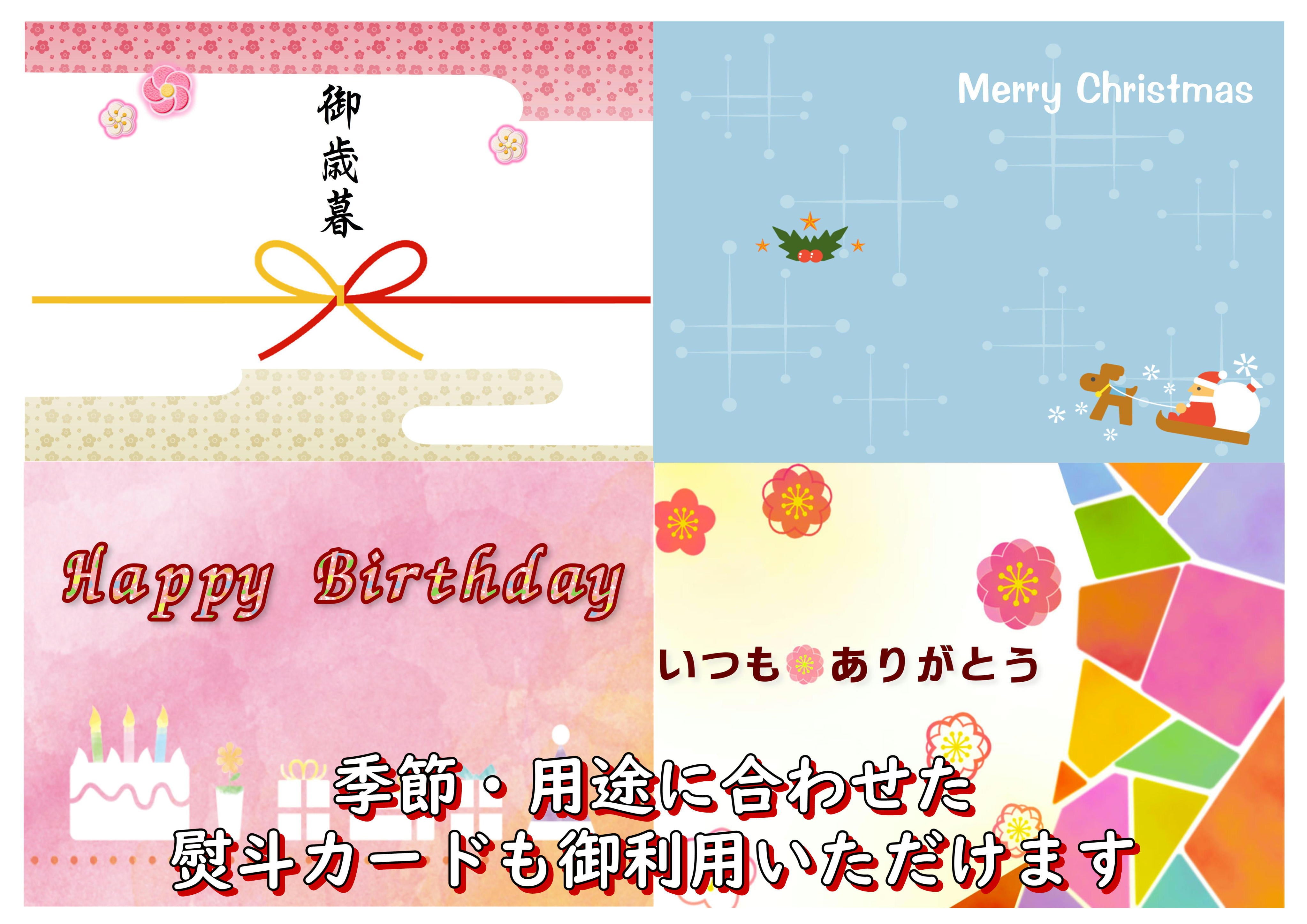 季節・用途に合わせた、熨斗カード(無料)も、ご利用いただけます。